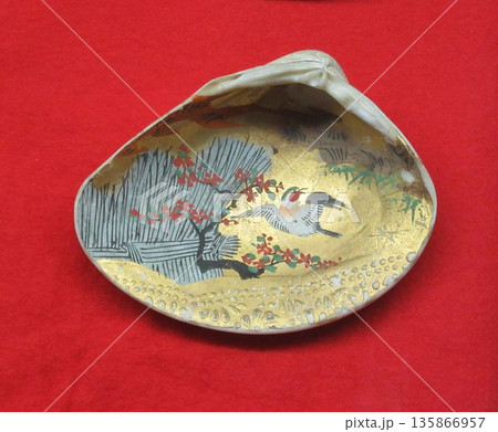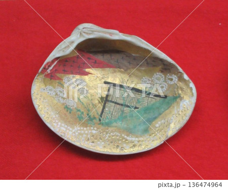 平安時代の遊戯「貝合わせ」に使われた絵が描かれたハマグリ