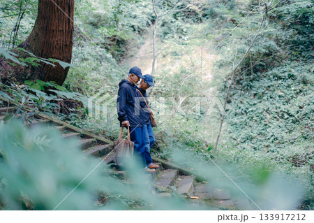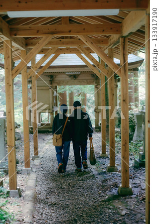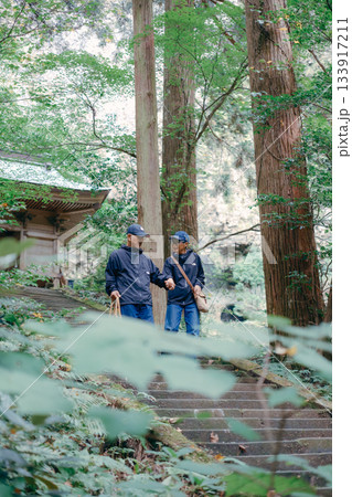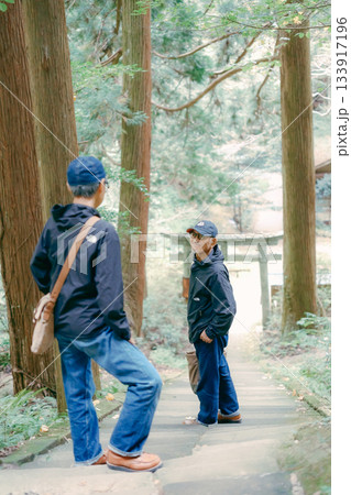 60代夫婦が神社を参拝するシーン