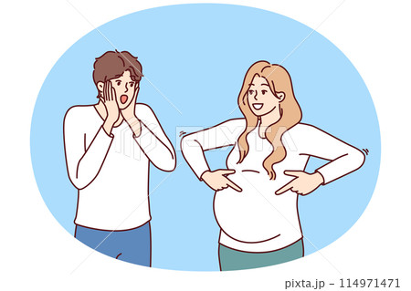 Shocked man is surprised to see pregnant woman and does not want to become father