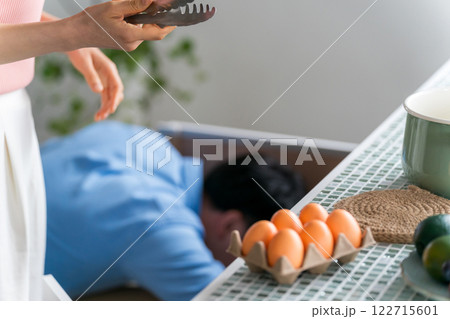 Jewish husband looking at his beloved wife while she checking glass cleanness