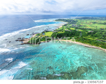 上空から眺める奄美諸島・沖永良部島 美しい夏空と海と空が広がる 2024年撮影