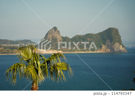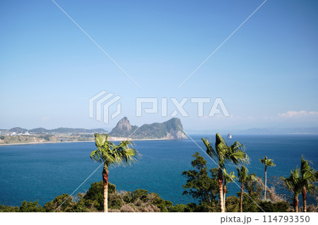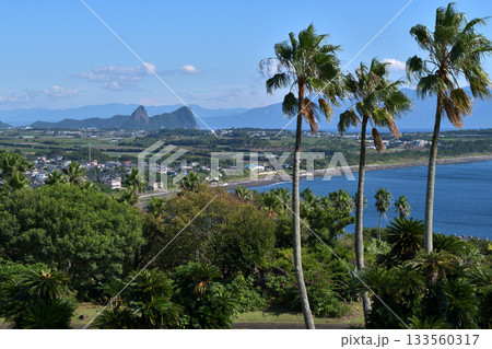 指宿市山川風景 奇岩竹山 遠望大隅半島