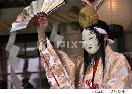 石見神楽 (夜神楽) 神社拝殿舞台で舞う演者