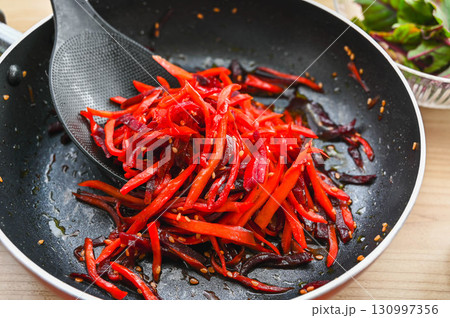 千切りした真っ赤な野菜 ビーツ