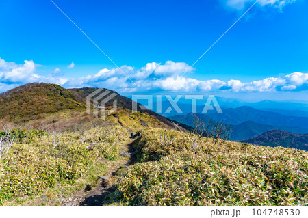晴れた晩秋の那岐山山頂 岡山県勝田郡奈義町 鳥取県八頭郡智頭町