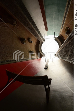 奈義町現代美術館の円筒の建物 岡山県勝田郡奈義町