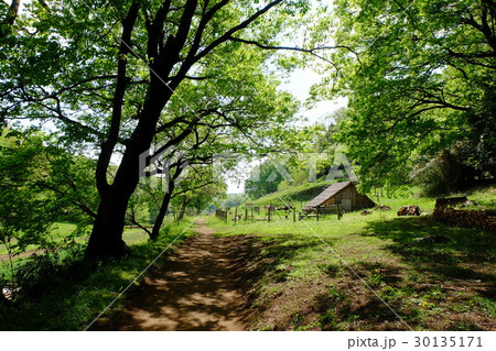 里山の新緑の風景