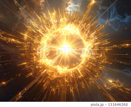 金色に輝くエネルギーの爆発が宇宙に広がる創造の光