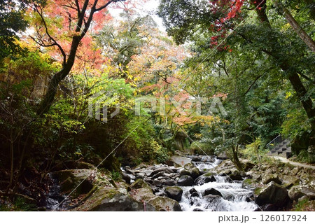 湯河原町 万葉公園湯河原惣湯川の道と紅葉と千歳川