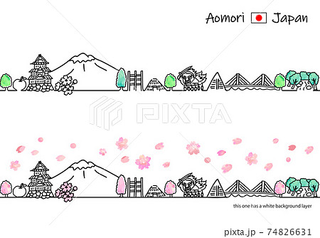 青森の街並みと新型コロナウイルスの線画イラストセット