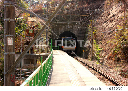 駅の脇にある踏切から見た青梅線石神前駅(1)