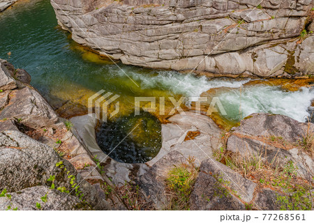 奥津渓 春 新緑 国指定名勝 天然記念物 奥津の甌穴群