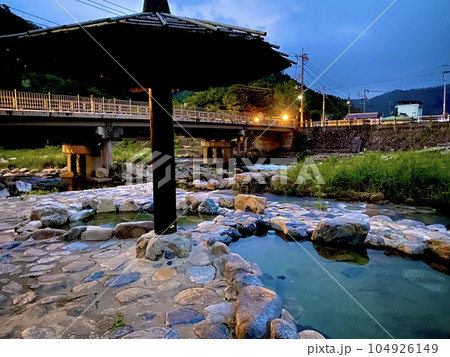 宵闇の奥津温泉、吉井川のほとりの足踏洗濯場 岡山県苫田郡鏡野町
