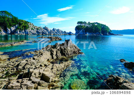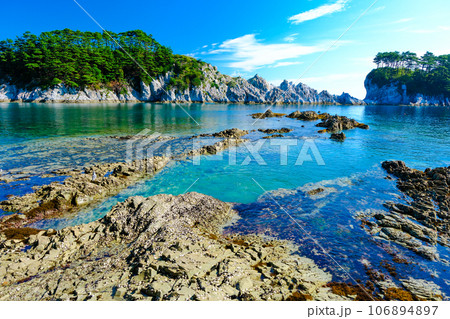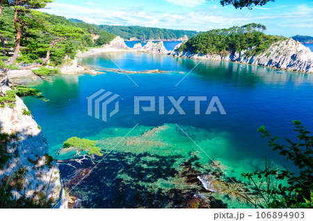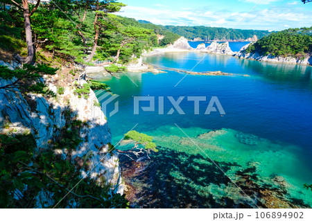 三陸復興国立公園 岩手県 宮古市 みやこ浄土ヶ浜 中の浜から田代崎半島と奥浄土ヶ浜を望む
