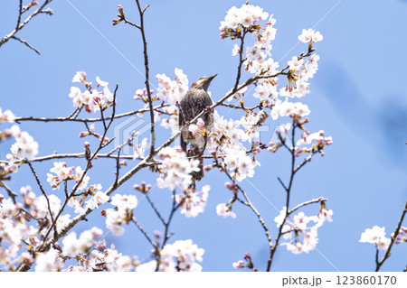 桜咲く春日和と野鳥(ヒヨドリ) 奥球磨県立自然公園・市房ダム周辺の野鳥 (熊本県球磨郡水上村湯山)