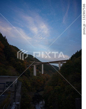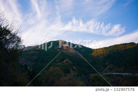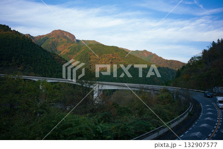 埼玉県秩父市のループ橋付近の紅葉と吊り橋