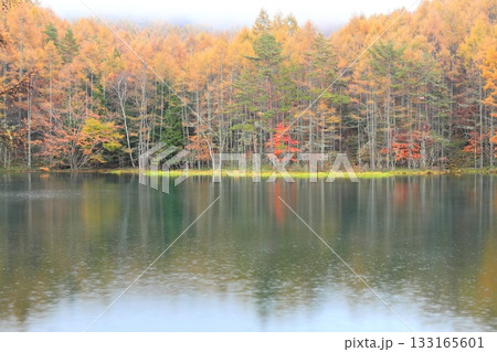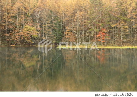 信州 奥蓼科 紅葉の神秘的な御射鹿池