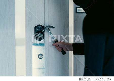 玄関で、バールのようなものを持って侵入してくる男 強盗 闇バイト