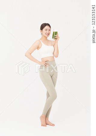 Cropped view of young woman wearing sportswear and drinking healthy drink