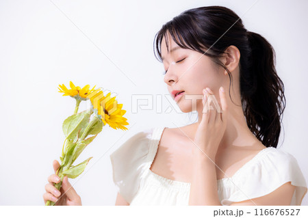 ビューティー 夏イメージ 白いワンピースを着ている女性