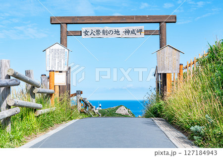 北海道積丹町 夏の北海道 観光名所として有名な神威岬への入口にある女人禁制の門