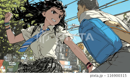 ひったくりや痴漢男を殴りつけてる(すでに金的は入ってる)女子高生