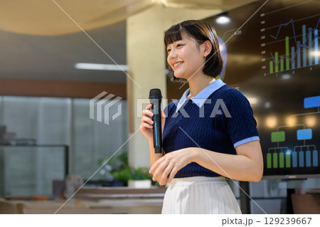 マイクで話す女子学生(寄り)