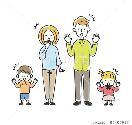 驚いているカジュアル姿の若い男女 全身 複数 3c