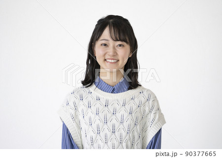 カメラ目線の若い女性 カメラ目線 白バック ポートレート