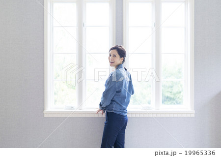窓辺に立つ40代の日本人女性