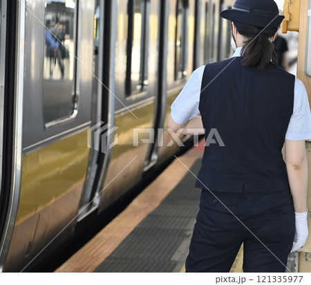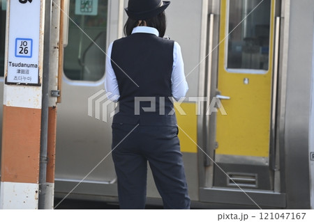 ローカル列車の女性車掌
