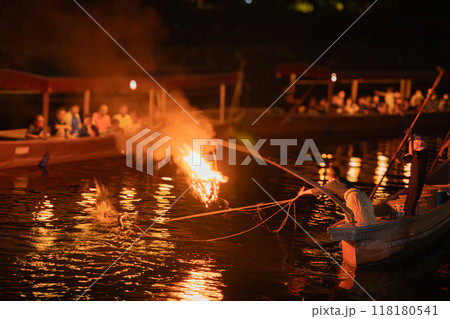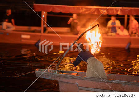 涼を感じる夏の風物詩宇治川の鵜飼いを撮影