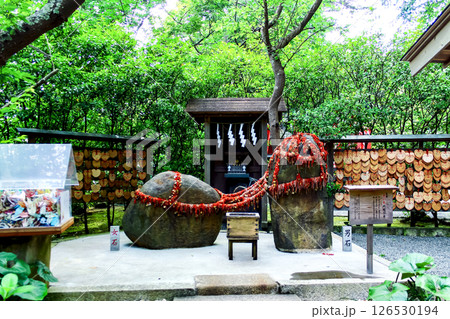 【神奈川】鎌倉・葛原岡神社 縁結び石と新緑(明るめ加工)