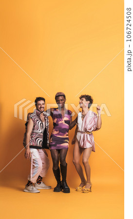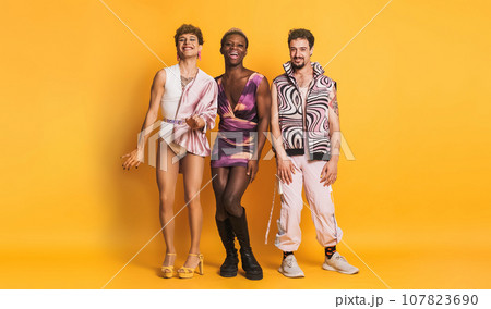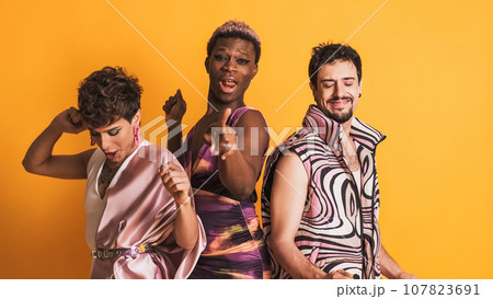 Happy multiethnic transgender people dancing and having fun