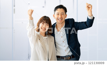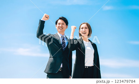 ガッツポーズをする笑顔のビジネスマン男女
