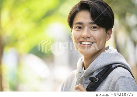 バックパックを肩にかけた笑顔の若い男性 ポートレート