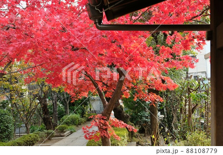紅葉した大田区蒲田所在の妙安寺境内
