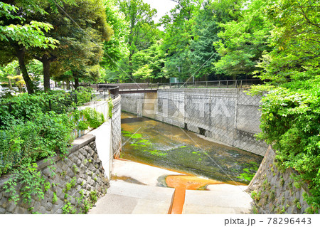 東京都中野区を流れる妙正寺川の風景