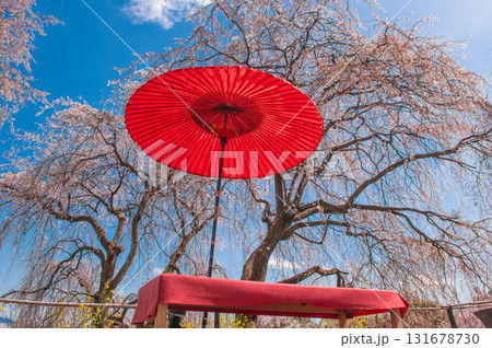 満開に咲いた身延のしだれ桜 福岡県うきはの観光名所 法華原華庭園 法華原の大しだれ桜 身延桜