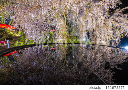 身延桜(妙法寺のしだれ桜)のライトアップ