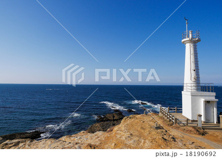 遠見ヶ鼻に建つ妙見埼灯台縦写真