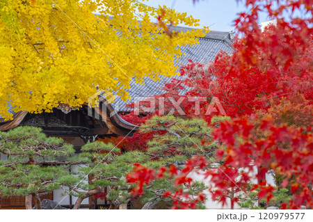 秋の京都 妙覺寺(妙覚寺) モミジとイチョウのコントラスト