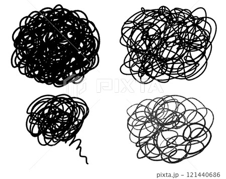 色々な手描きのモヤモヤマークのセット 憂うつ 不安 鬱