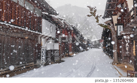 《長野県》雪が降る妻籠宿・木曽の宿場町