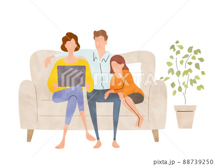 ベクターイラスト素材:ソファーに集まる家族