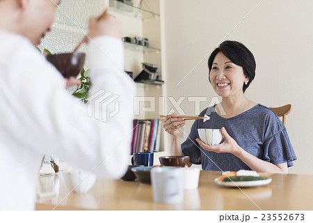 食事をするシニア夫婦