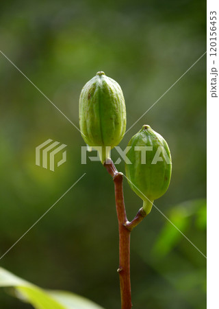姥百合の緑色の実