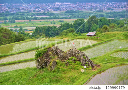 姪石と美しい姨捨の棚田 長野県千曲市(ドローンによる空撮)
