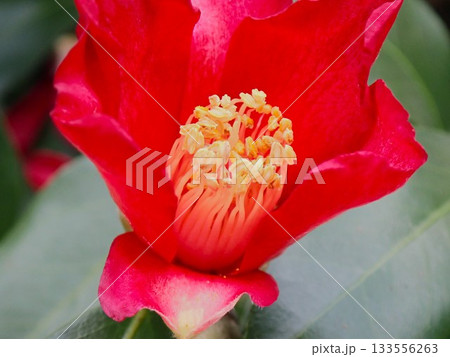 赤いツバキの花 伊豆大島