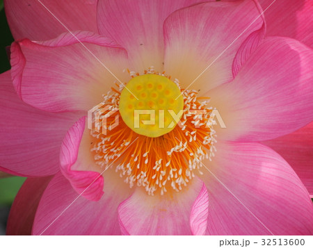 埼玉県行田市小針 古代蓮の里の水生植物園に咲く花蓮の品種のひとつ甲斐姫のクローズアップ